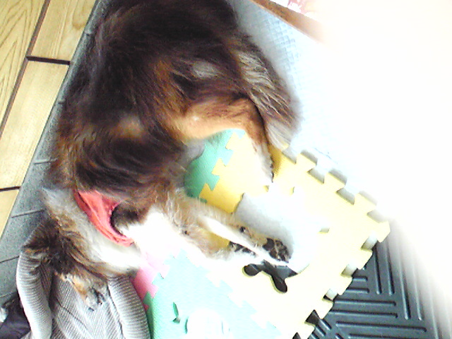 我が家の老犬マー君15歳 人間年齢75歳くらい?ついに寝た体制から自力で起きれなくなり 起き上がりたい時には、ワンワン吠えて家人が、呼ばれます。起こした途端に、足がもたついて倒れるから、私が、お仕事の日でいない日は、昼休みに一時帰宅した時しか起こしてあげられなくてかわいそうに思いますが、その分、私がお休みの日には、何度も何度も呼ばれます。玄関にいるマー君 起き上がらせて家事にもどると