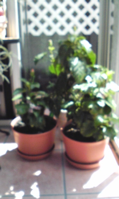 ガーデンルームのハイビスカスをひとまわり大きな鉢に植え替えて、養分になる土を増やし、さらに液体肥料の栄養水を土に挿し込んだら、つぼみが次々と…。