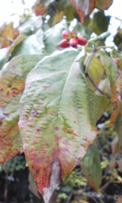 我が家の狭い庭にあるシンボルツリーのハナミズキにも秋の気配が。