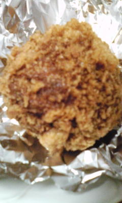 飲み会出席のため、いったん車で帰宅した夫。私の運転にて飲み会の現場へと送り届けたその帰り道。信じられないような光景に遭遇。私のすぐ前方の車が、すごいスリップ音と共に急停止。みれば右前輪が外れてタイヤが90度方向に…。スピード出していたら危うく追突するところでした。気分転換にその足で、牛肉メンチカツゲットして気分よく家路に着きました~。■■■