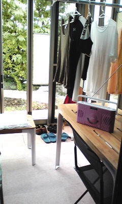 梅雨です。お決まり通りの雨です。でもお庭のリニューアルに伴い5月にガーデンルームが完成してからは、雨もいいもんだ…と。ピンクのCDラジオはスギ薬局のポイントを貯めて、ゲット。お洗濯物を干しながら、聴いてます。