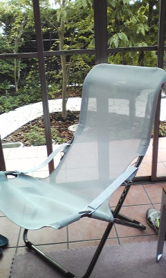 ザ・コンランショップのバーゲンセールに、夫と行ってきました。我が家のガーデンルームに、デザインとカラーがぴったりとするチェアが欲しかったのです。ありました。ありました。さすがです。折りたたみ式なのに座り心地も満点。ひとつは、読書好きな夫用に。角度調節も出来て折りたためて軽くておしゃれなデザイン。お値段もお手頃でした。