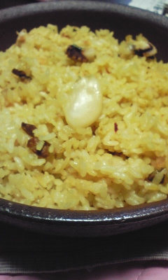 北海道北見のオニオンコンソメスープが手に入りましたので、何かそれにぴったりな献立をと思いつき、冷凍のシーフードミックスを入れてパエリア風の炊き込みご飯を炊いてみました。